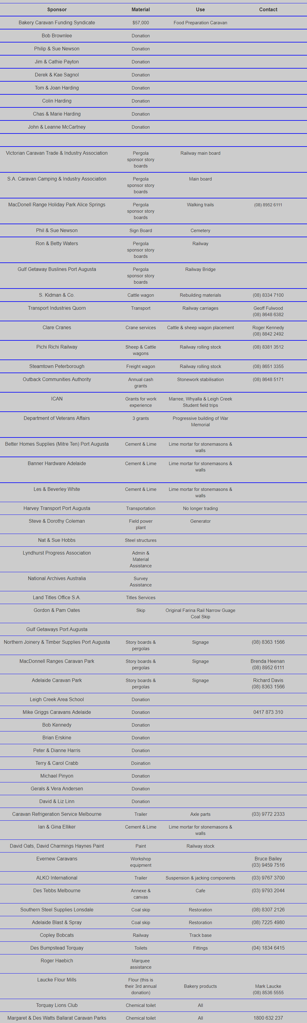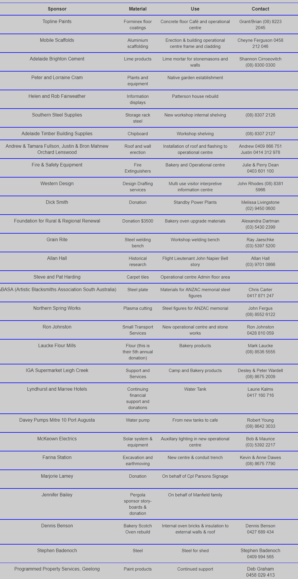 Farina Sponsors and Donations 2015 to 2023