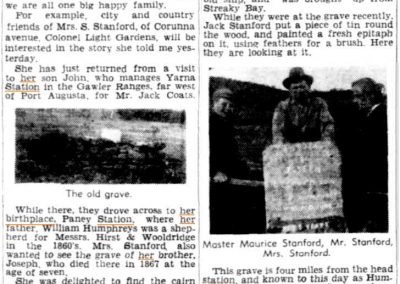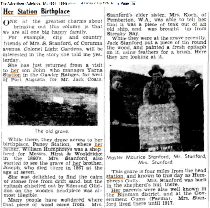 Sarah married Henry Stanford in Farina in 1888. With the exception of a short period in Broken Hill, Sarah never left Farina until about 1920.