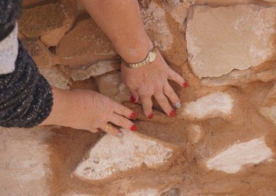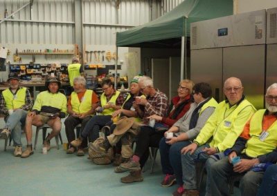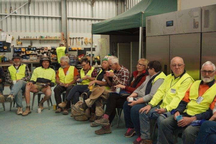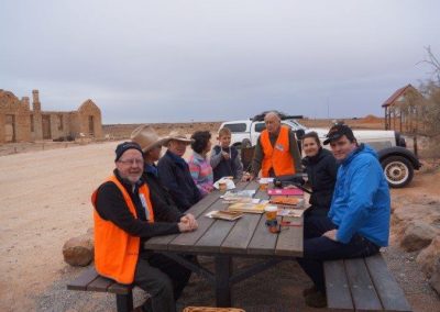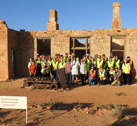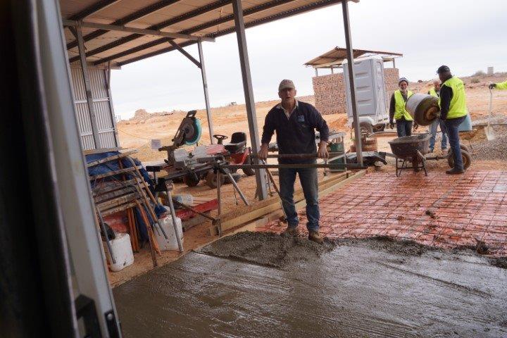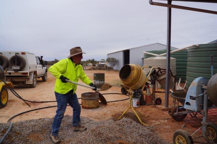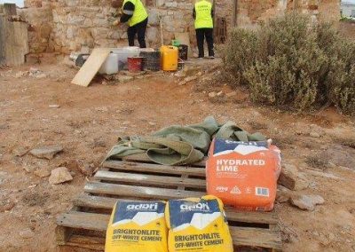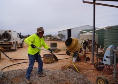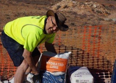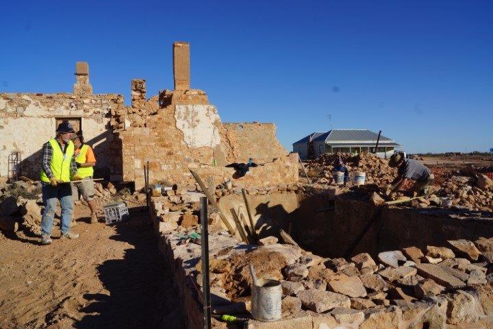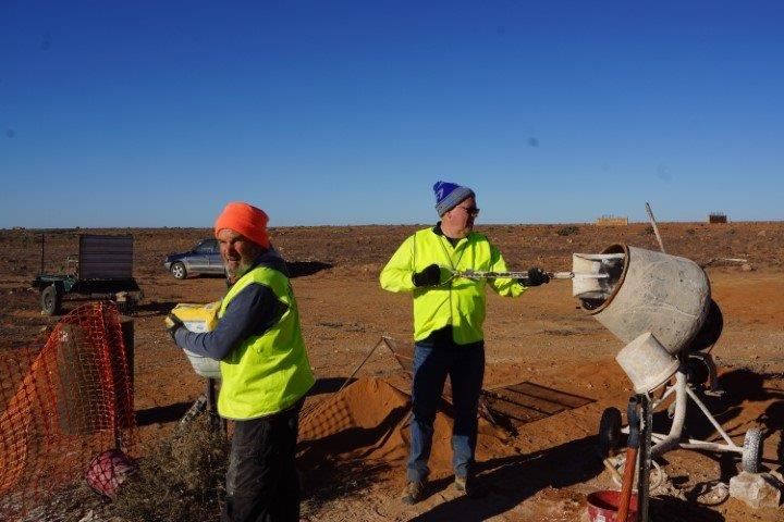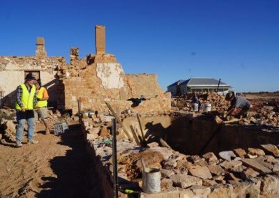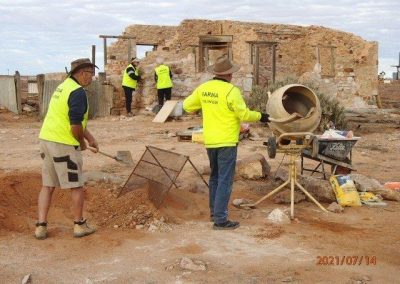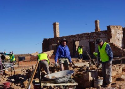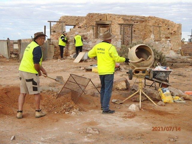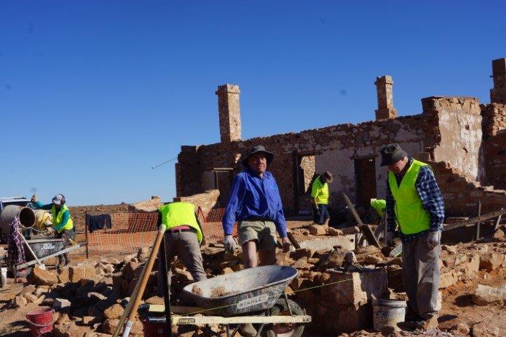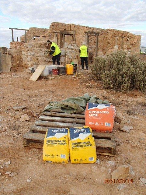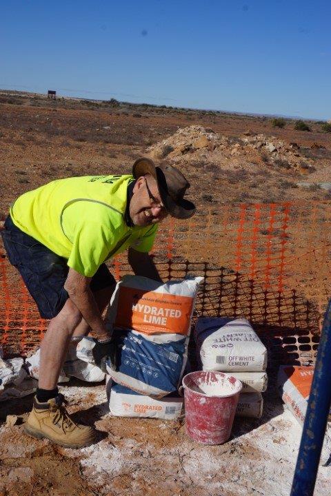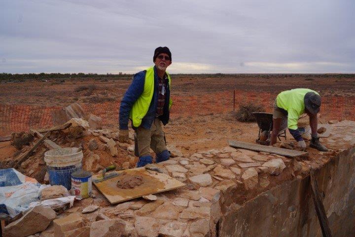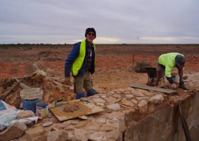 The Stone workers (known as the “Stonies”) were busy working on the Transcontinental in-ground water tank, the Exchange scotch oven and some re-pointing at Moffatt’s House. The work this year was supported by Adbri (Adelaide Brighton Cement), with the donation of a pallet of lime, pallet of off-white cement and pallet of portland cement.