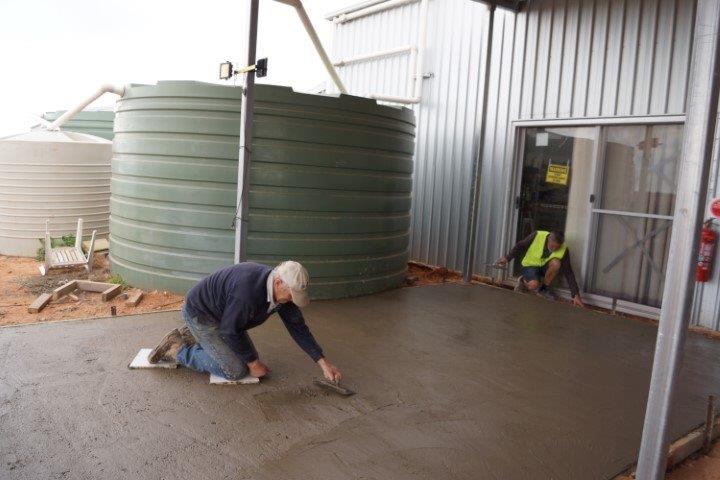 Our project team also laid a sizeable concrete slab under the rear annexe of Toms Shed so that the metalwork (in next years restoration program) can be undertaken outside, with space for cutting and welding. This will make more room in the general workshop for other activities.