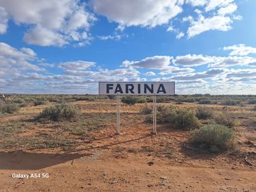 The Farina railway station sign has returned. In the late 70’s the sign went missing and a few years later it was discovered by Kevin Dawes, the Farina Station owner, amongst some weeds by the main highway. Kevin placed it in the back of his farm shed and it was forgotten about until it was rediscovered 12 months ago. The volunteers led by Rob Ball have cleaned it up and restored it to its place.