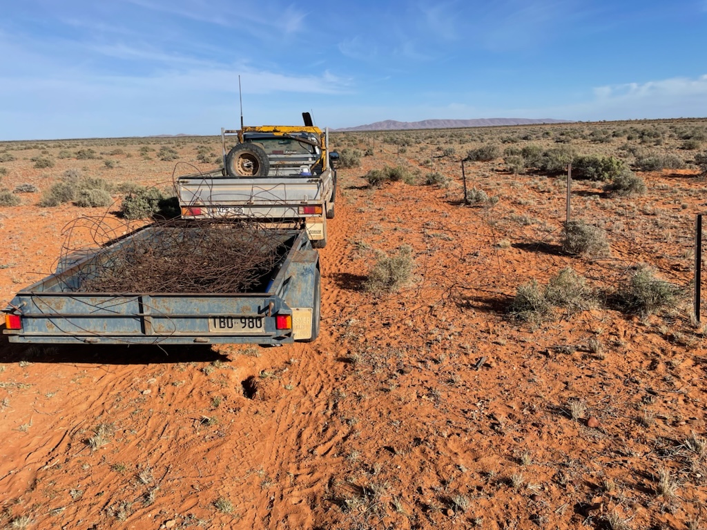 Kevin led a team of volunteers to clean up old Fence Wire south of Farina where the Mulga posts had previously been collected to use a firewood for the Underground Oven. They picked up around 4 big trailer loads of wire.
