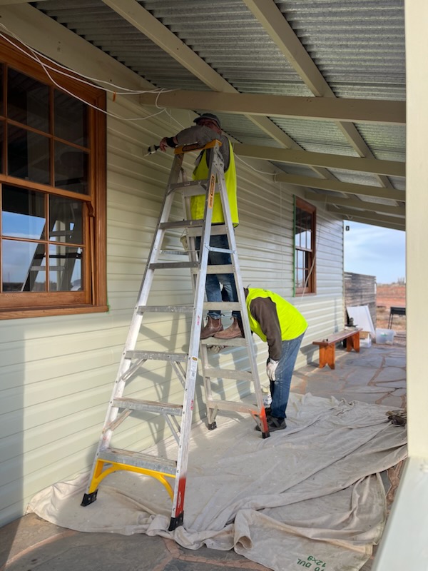 After the hard work building Paterson’s House we aim to keep it in tip top shape, and the team were working hard putting another coat of paint on the northern wall. The northern sun hits buildings hard.