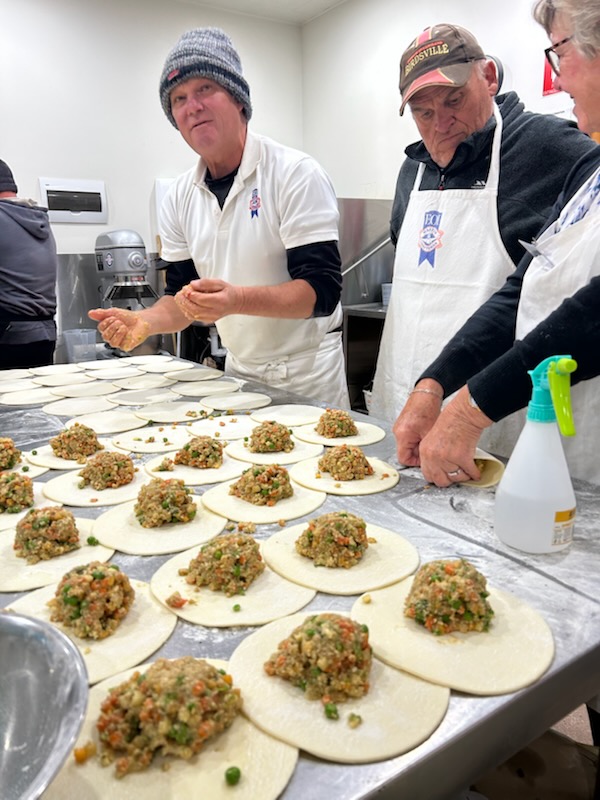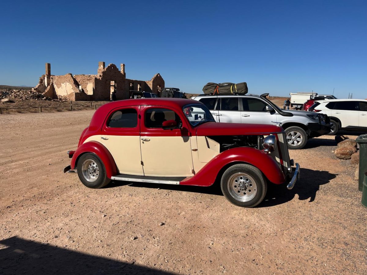 This week saw some visitors arriving at Farina in style, driving a classic car for flying in a helicopter. The couple in the helicopter were from Dubbo and were given a Farina pastie by friends so through they’d drop in on the way and buy some themselves.