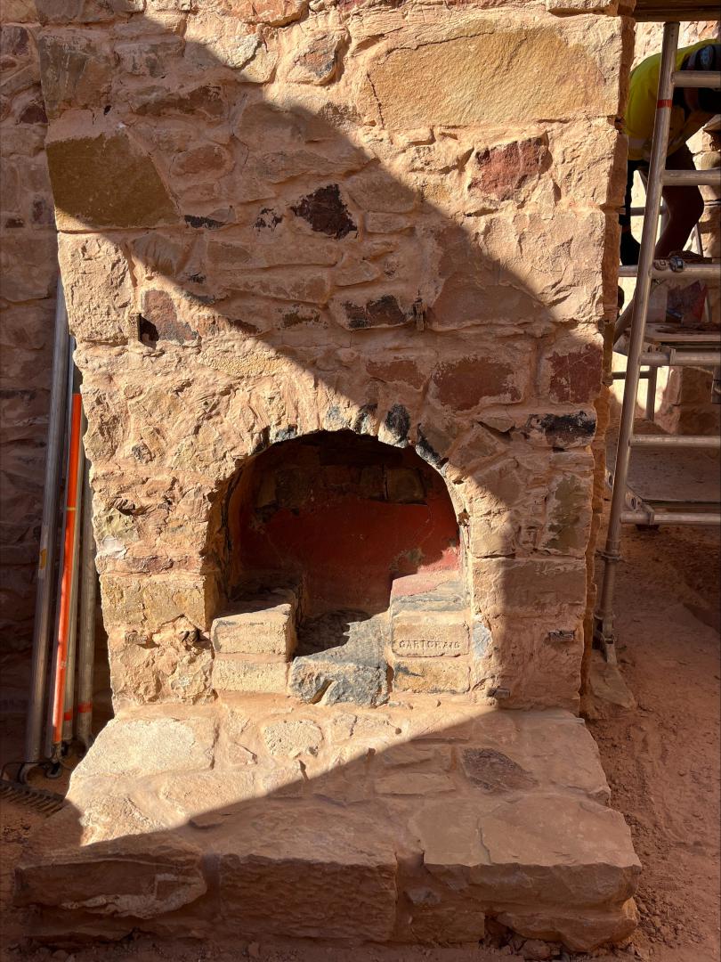 Work continued at the Post Office, with the three Fireplaces completed and stabilisation work continuing on the higher portions of the walls.