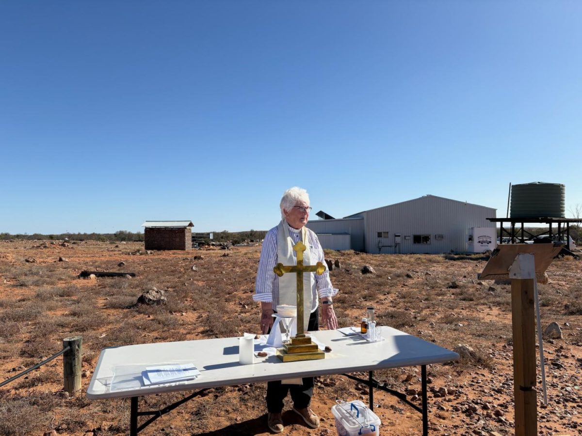 After another successful cricket match at the start of week 4 (see separate page), Sunday morning saw the Reverend Sandra Bryson conducting the Bell memorial service and the ecumenical service. Once again we thank Doug Sprigg for flying over from Arkaroola for the service and landing at Farina.